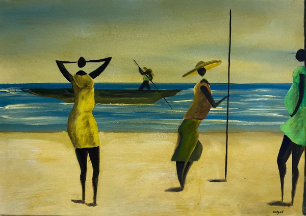 • Héctor Carybe, `Marinha com Figuras` - óleo sobre tela medindo 48,5x68,5cm, a.c.i.d