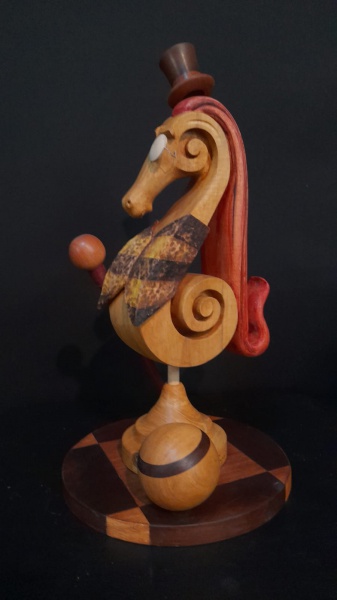 • Evandro Schiavone, `Cavalo Xadrez` - Escultura em Madeira medindo 45x26x26cm, assinatura na base