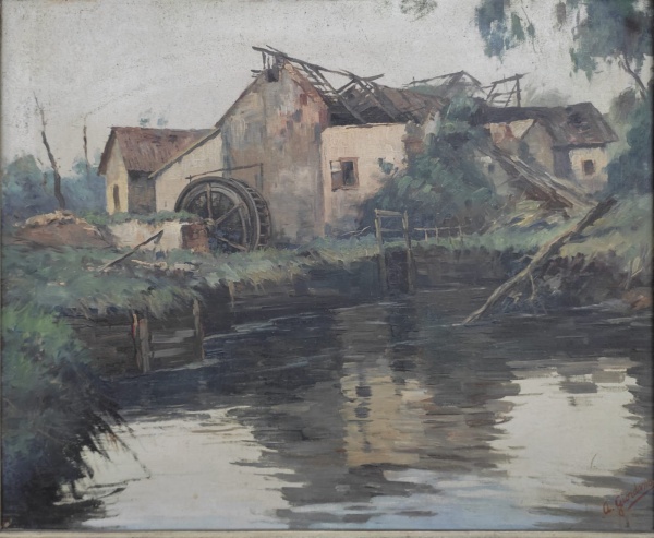 • Dário Mecatti, `Moinho com Árvore` - óleo sobre tela medindo 50x60cm, a.c.i.d
