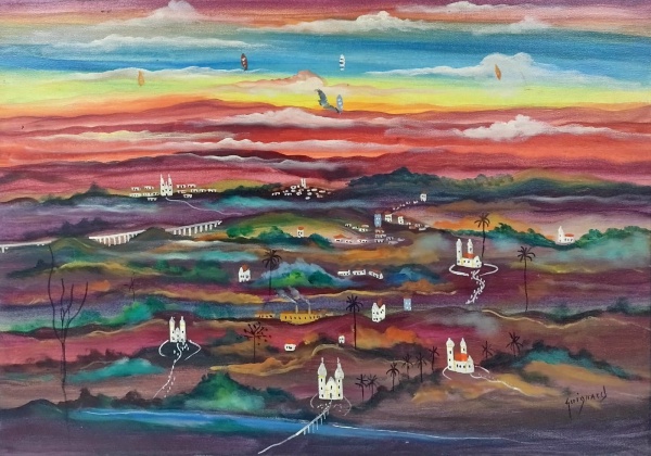 • Alberto da Veiga Guignard, `Paisagem Mineira em Sabará` - óleo sobre tela medindo 68X48, a.c.i.d e verso